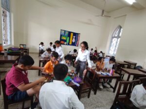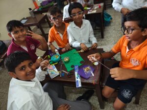 On 8th August 2025, a vibrant Rakhi Making Competition was held for students of Classes P1 to P5. The atmosphere was full of excitement as students enthusiastically took part in the activity, bringing their creativity and festive spirit to life. Using a variety of colourful materials—ribbons, beads, glitter, and more—the young participants designed beautiful, imaginative Rakhi’s. Each piece was unique, reflecting not only artistic flair but also the heartfelt meaning behind the festival.